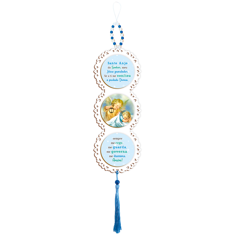 Os adornos triplos da Bella Arte são confeccionados em MDF branco com a imagem adesivada. Acabamento de borla e a pérola. Ideal para pendurar na parede da sua casa ou presentear um familiar.