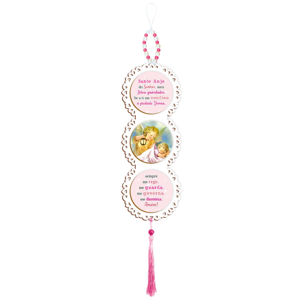 Os adornos triplos da Bella Arte são confeccionados em MDF branco com a imagem adesivada. Acabamento de borla e a pérola. Ideal para pendurar na parede da sua casa ou presentear um familiar.