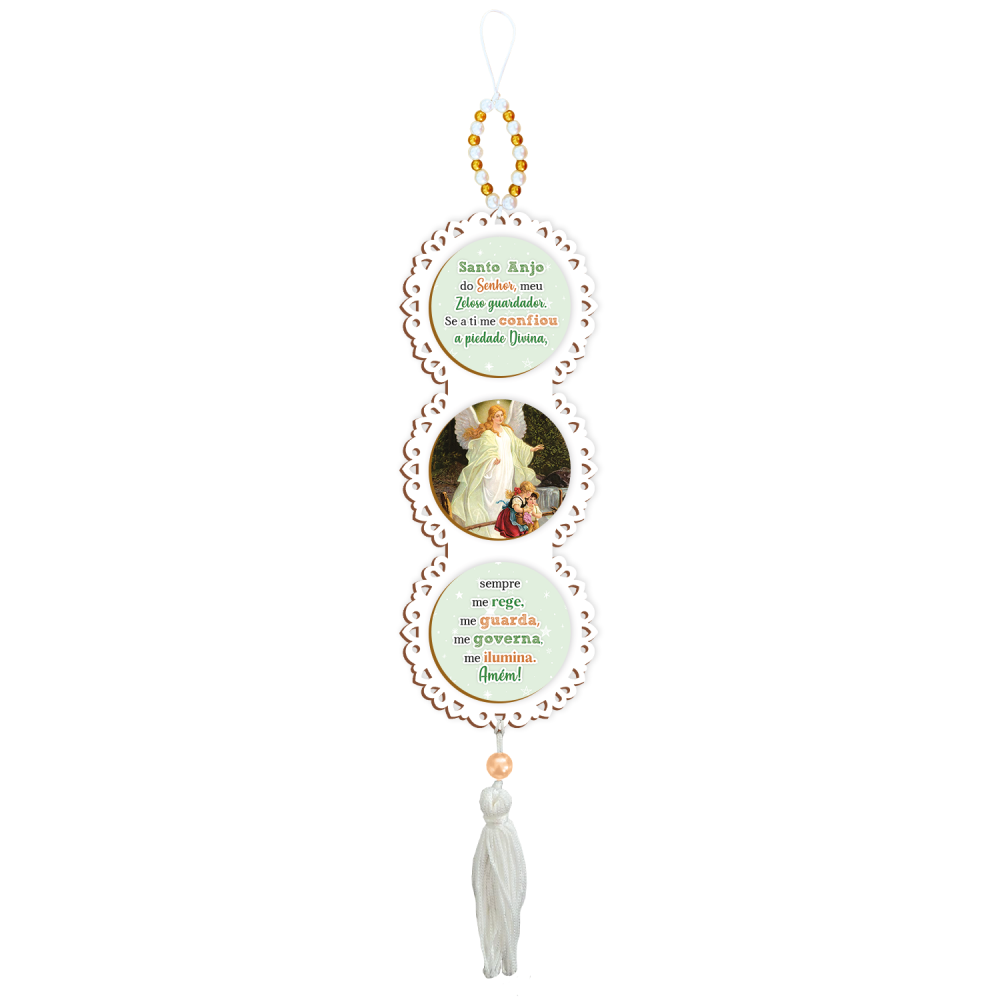 Os adornos triplos da Bella Arte são confeccionados em MDF branco com a imagem adesivada. Acabamento de borla e a pérola. Ideal para pendurar na parede da sua casa ou presentear um familiar.