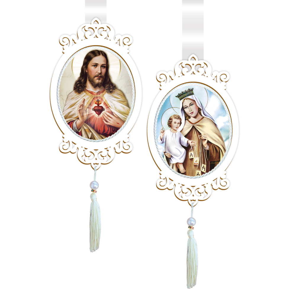 O Escapulário de Porta ou Adorno de Porta da Bella Arte é confeccionado em MDF branco 3mm e possui imagem do Sagrado Coração de Jesus.