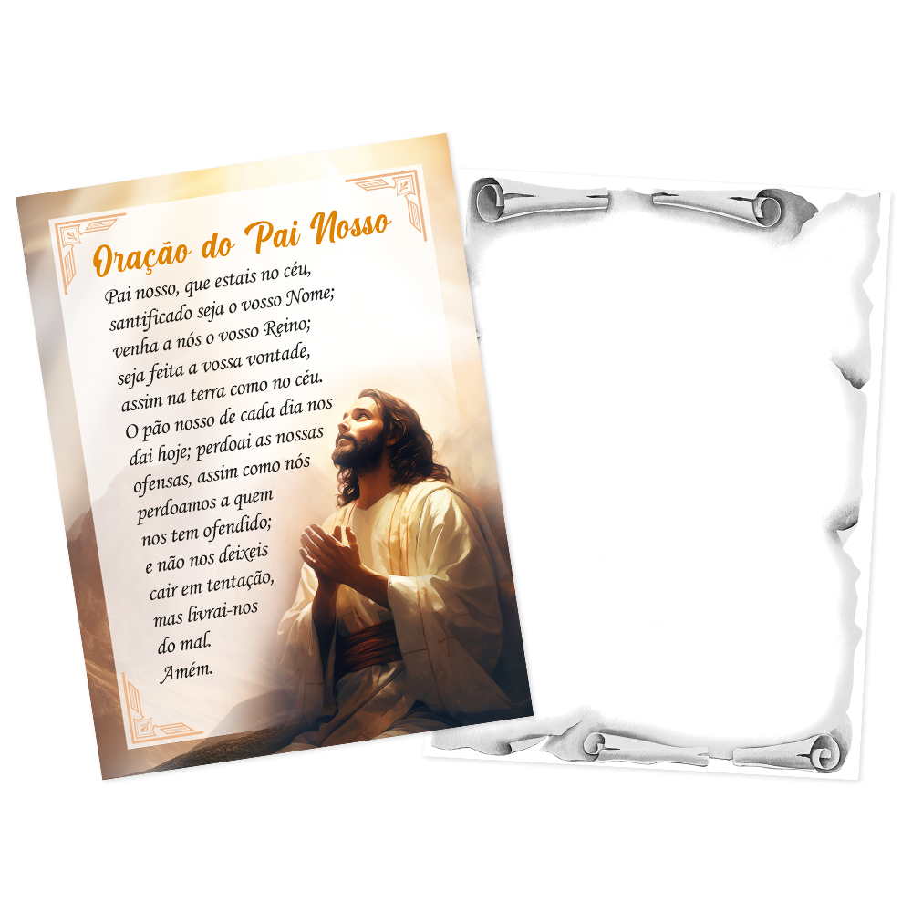 Os Postais religiosos são feitos em papel triplex e possuem acabmanetos em verniz e glitter. É uma ótima opção para presentear um familiar ou um amigo.