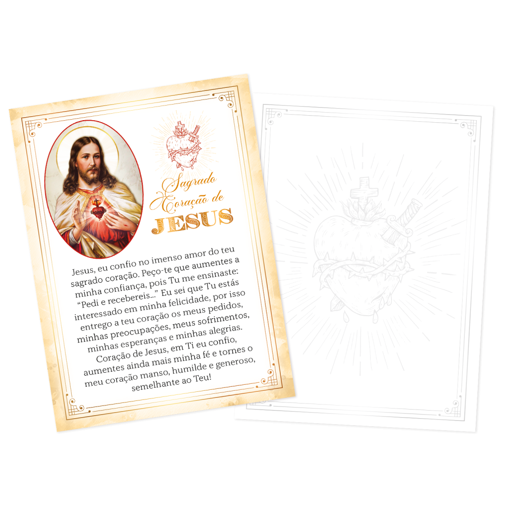 Os Postais religiosos são feitos em papel triplex e possuem acabmanetos em verniz e glitter. É uma ótima opção para presentear um familiar ou um amigo.