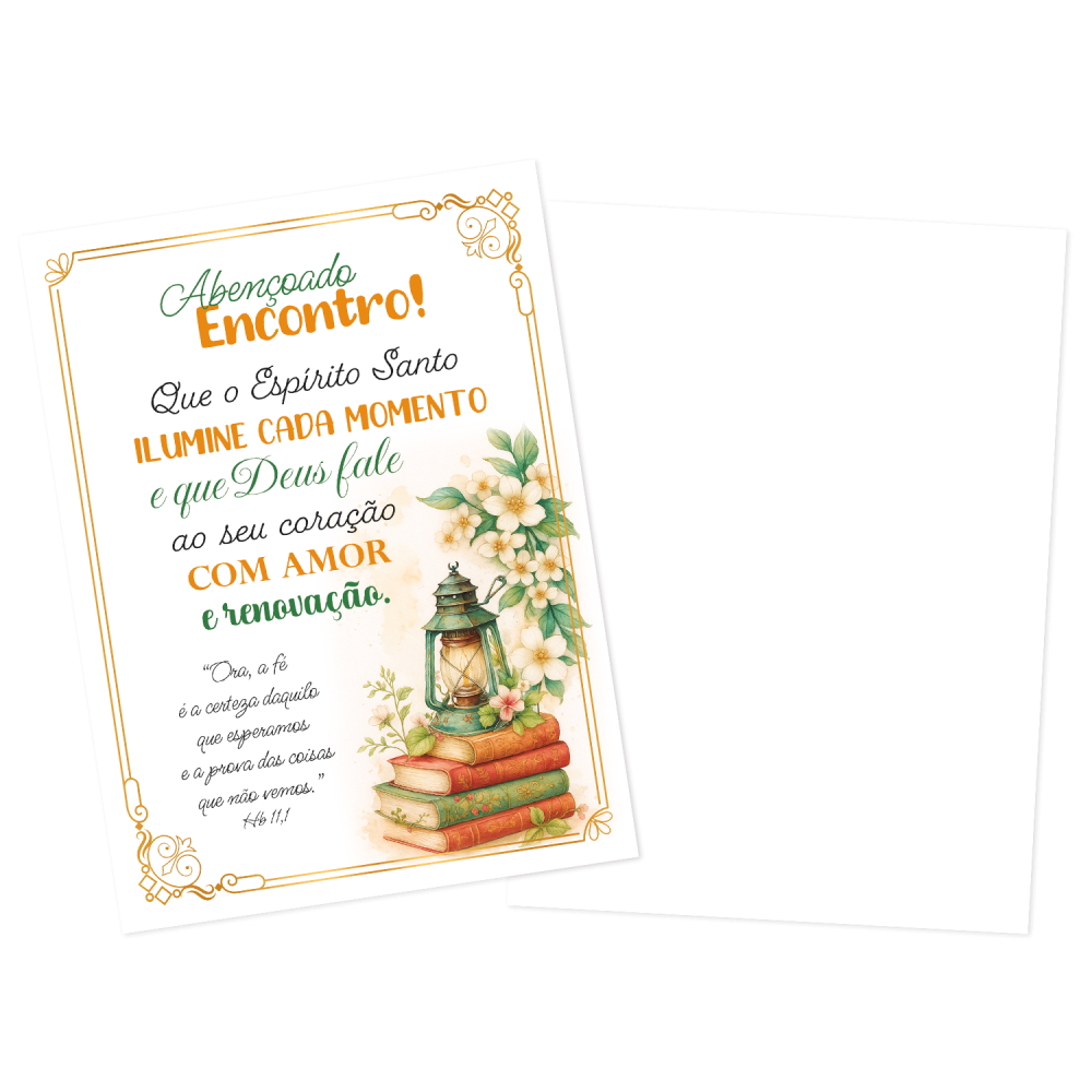 Os Postais religiosos são feitos em papel triplex e possuem acabmanetos em verniz e glitter. É uma ótima opção para presentear um familiar ou um amigo.