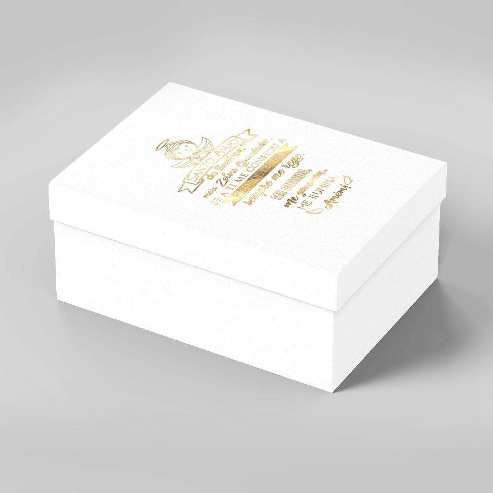 TC-011 - Caixa Presente de Papel com Hotstamp - Santo Anjo Dourado